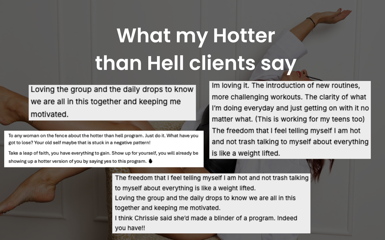 I want you jumping out of bed each day rather than dragging yourself through the day, I want you looking in the mirror and thinking “yes, I look HOT” rather than avoiding the mirror altogether.